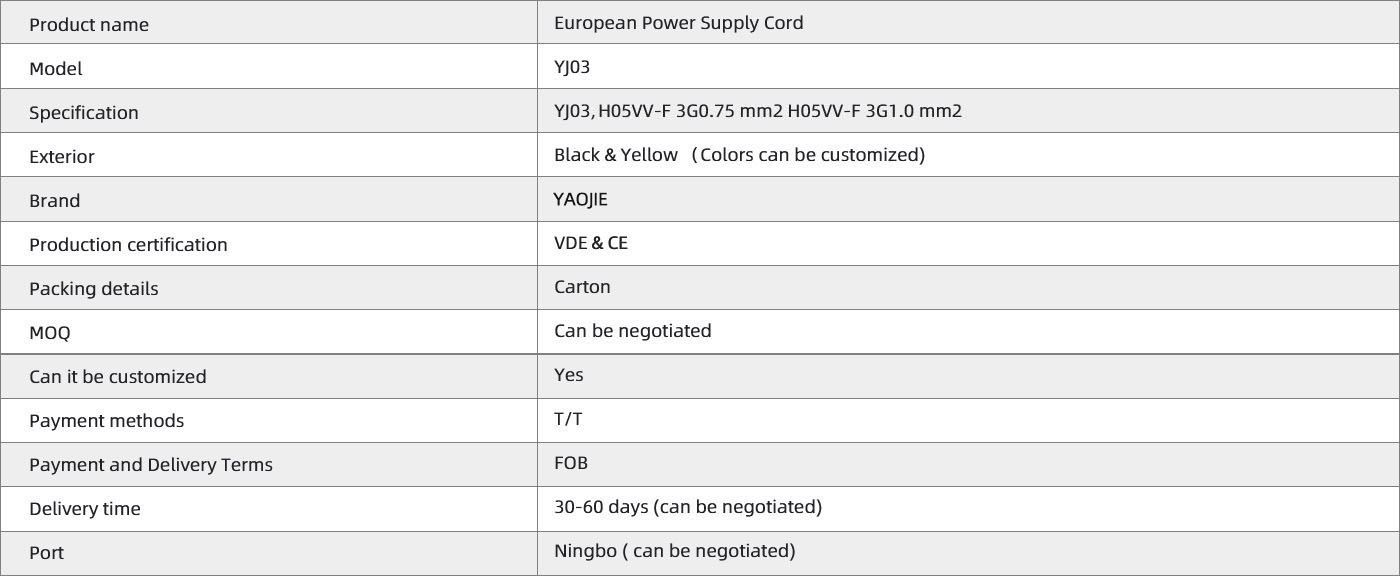 多年来,宁波姚耀电器有限公司一直以质量拓市场,诚信赢客户的管理理念和经营模式在电源线行业市场站稳脚跟,秉承高质量的产品、体系和服务,今后,公司将继续以企业文化建设为核心内容,不断壮大公司规模,增强公司实力,实现"yaojie"品牌电源线畅销全球的目标。