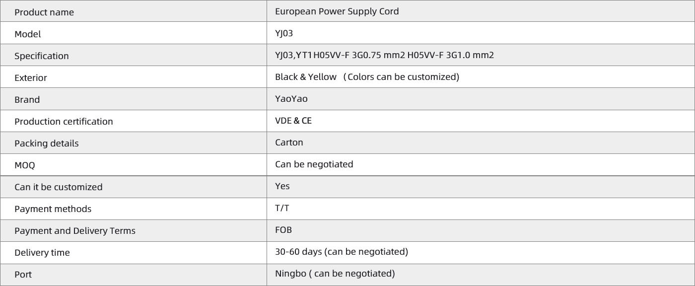 European Power Supply Cord