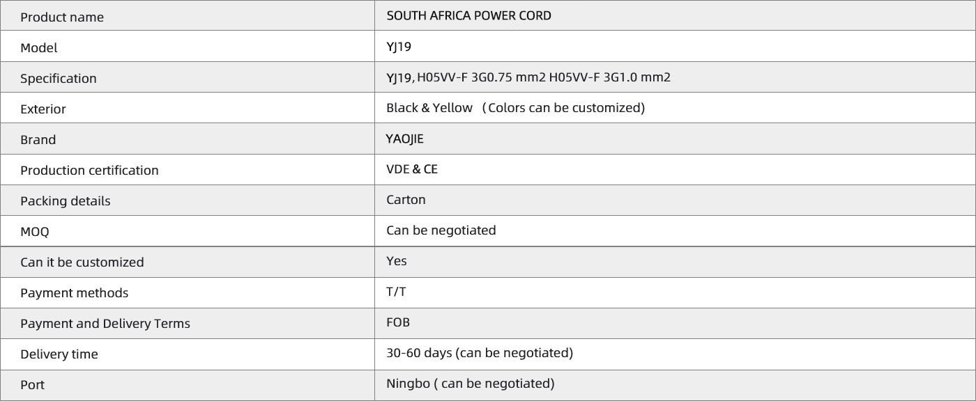 South Africa power cord